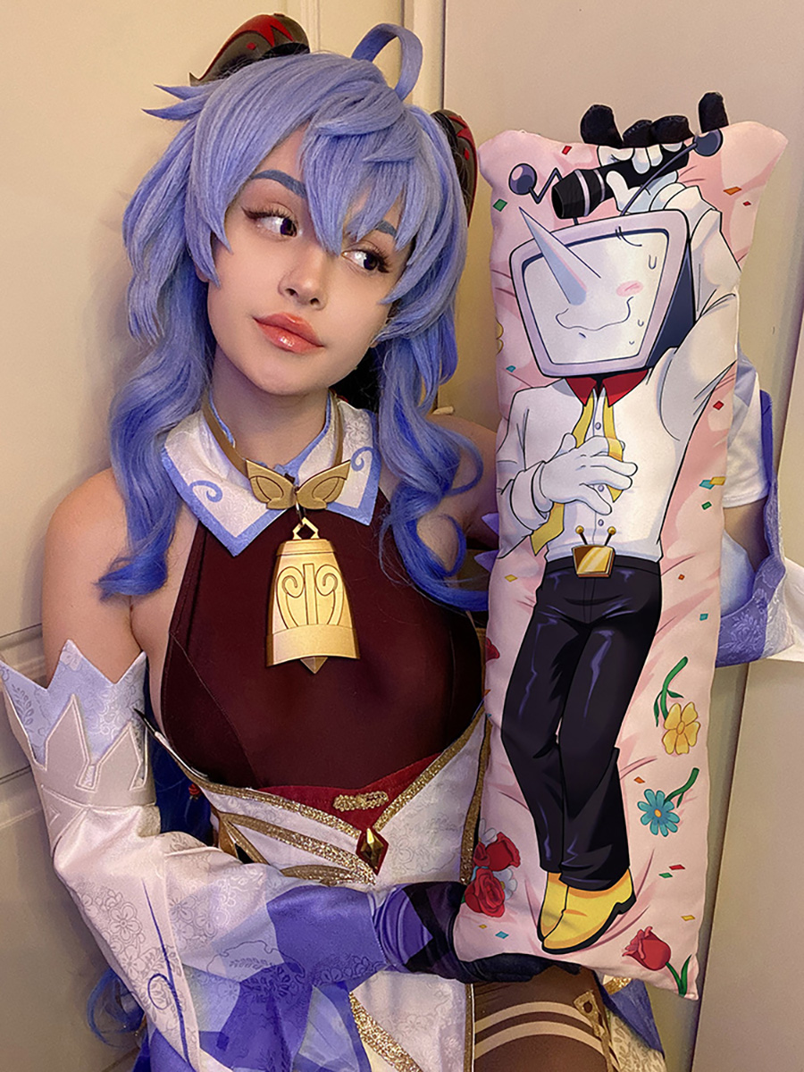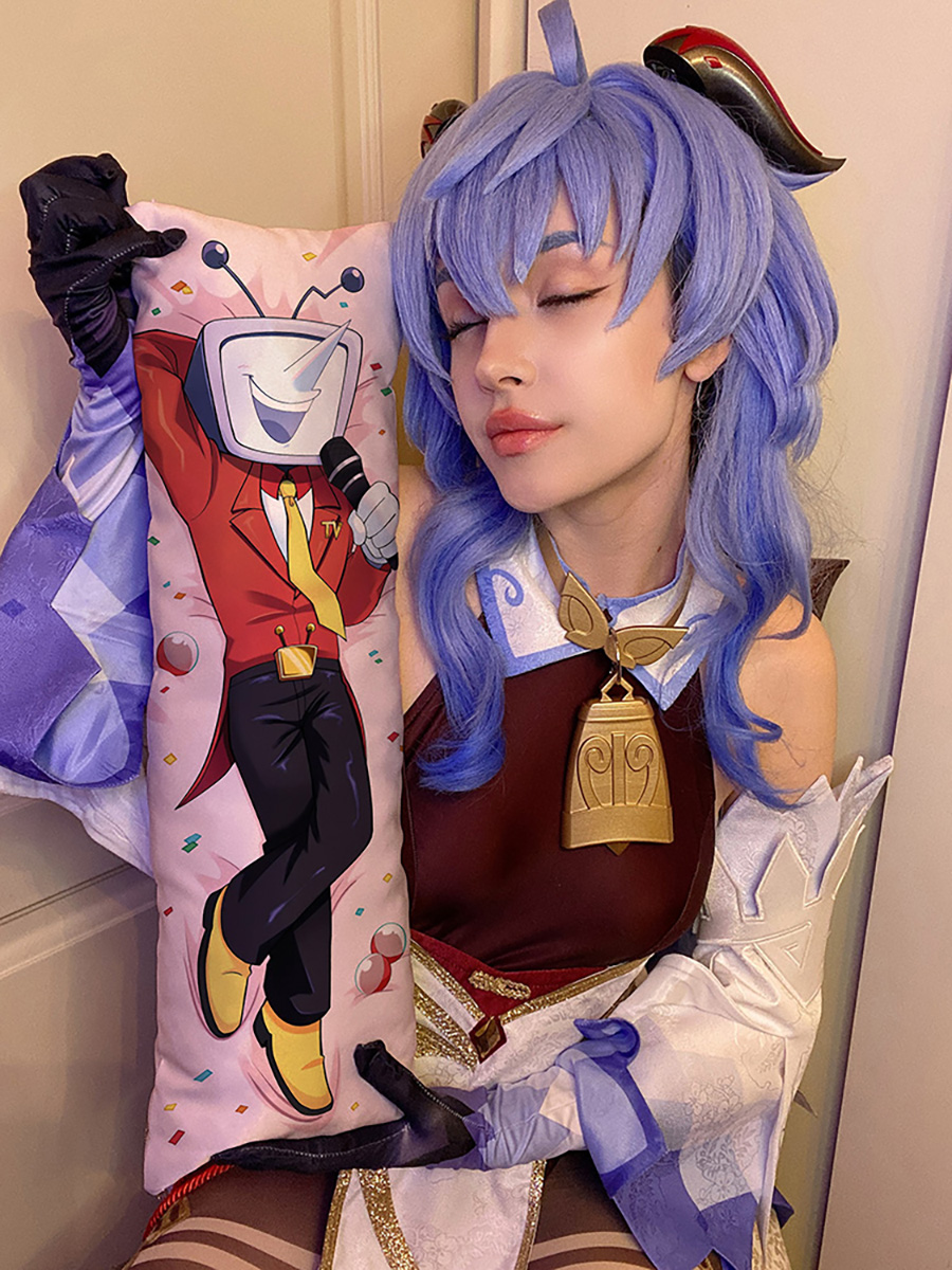 В мини дакимакуре не используется наперник, наполнитель сразу набивается в наволочку. Для изготовления наволочки мы используем высококачественный атлас плотностью 160 гр/м2. Это плотный и износостойкий материал, приятный на ощупь. Рисунок напечатанный на атласе получается яркий и насыщенный. В качестве наполнителя мы используем холлофайбер - гипоаллергенный материал, сочетающий мягкость и упругость.