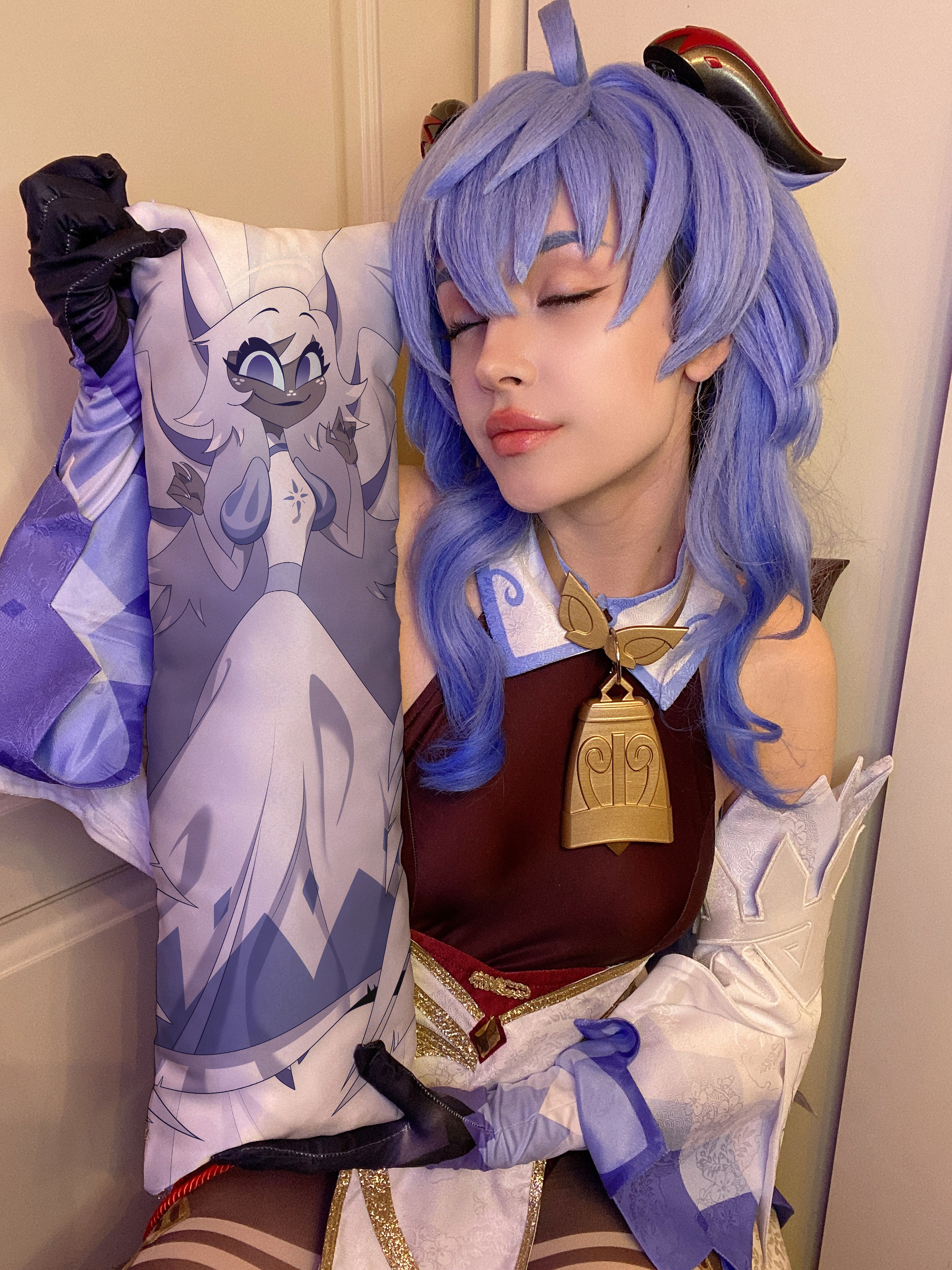 В мини дакимакуре не используется наперник, наполнитель сразу набивается в наволочку. Для изготовления наволочки мы используем высококачественный атлас плотностью 160 гр/м2. Это плотный и износостойкий материал, приятный на ощупь. Рисунок напечатанный на атласе получается яркий и насыщенный. В качестве наполнителя мы используем холлофайбер - гипоаллергенный материал, сочетающий мягкость и упругость.
